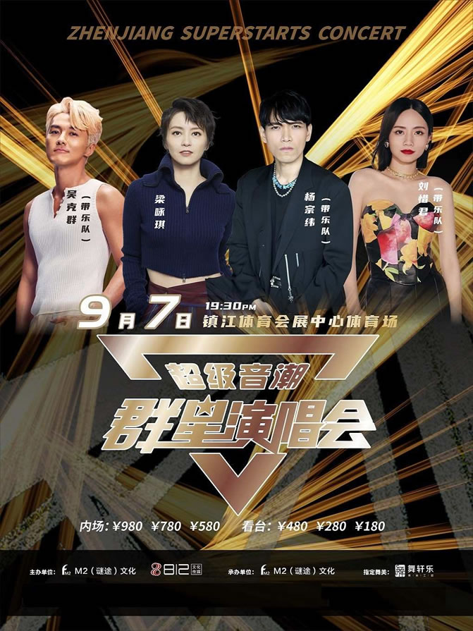 2024 年 9 月 7 日,《超级音潮群星演唱会》将于镇江体育会展中心体育场隆重举行,让我们共同期待这四位实力艺人在此次演唱会中为大家奉献一场无与伦比的音乐盛宴!