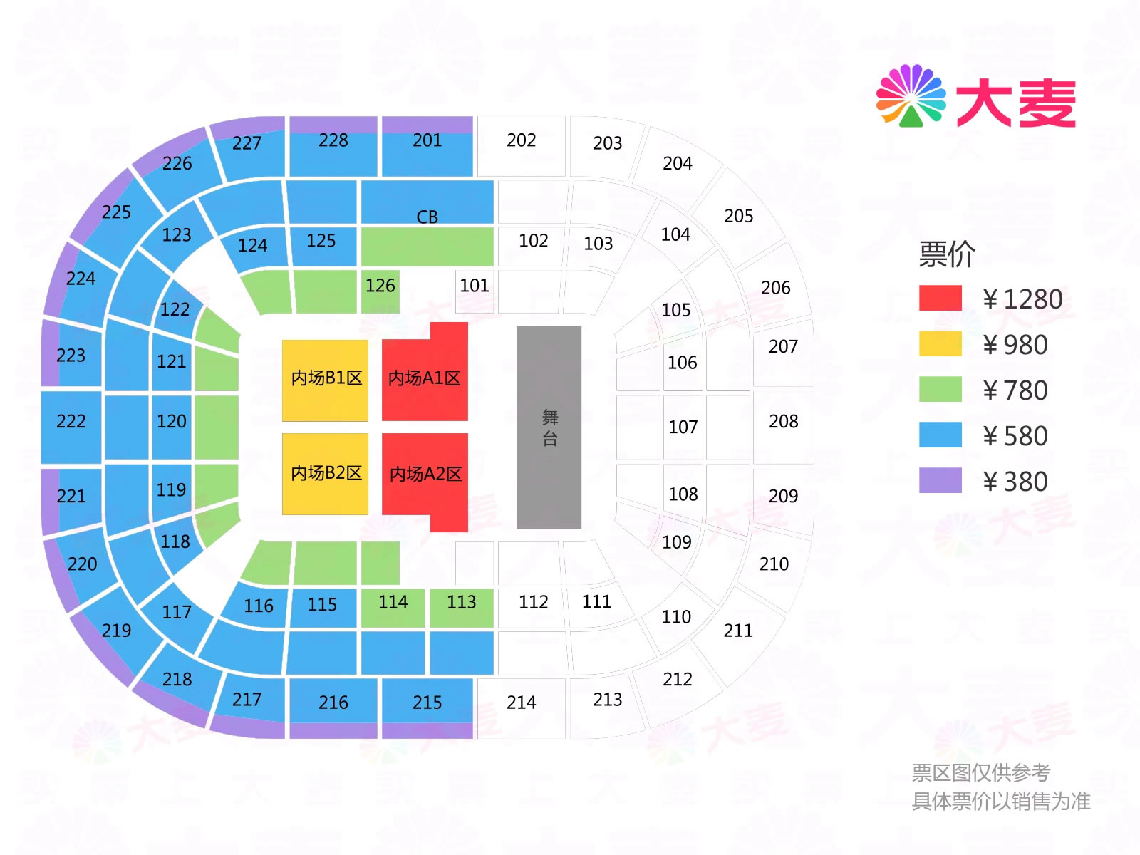 票价:380元、580元、780元、980元、1280元