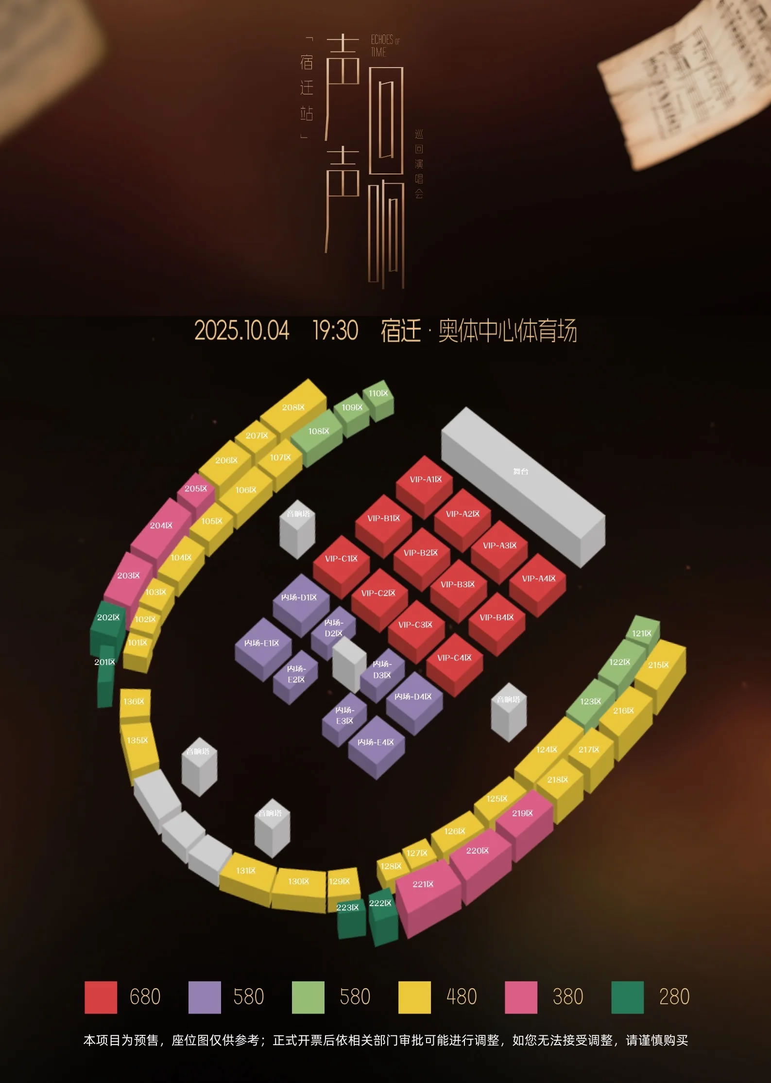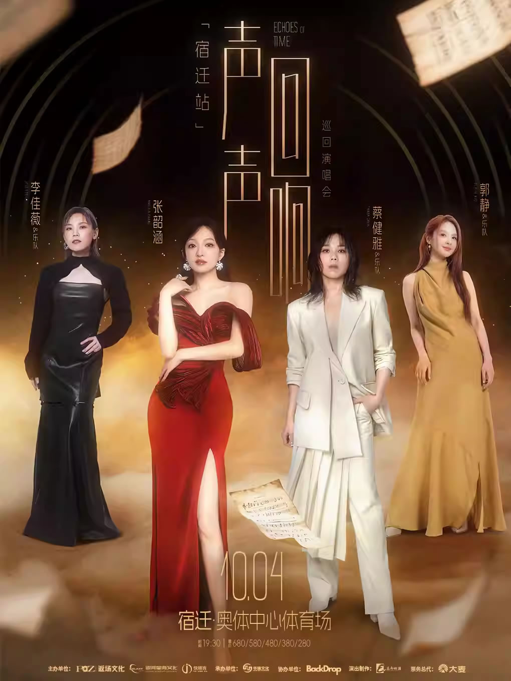 「声声回响巡回演唱会宿迁站」定档10月4日!让我们齐聚项王故里,与四位华语乐坛重量级天后和特邀嘉宾一起,共赴一场关于青春与成长的音乐之约。