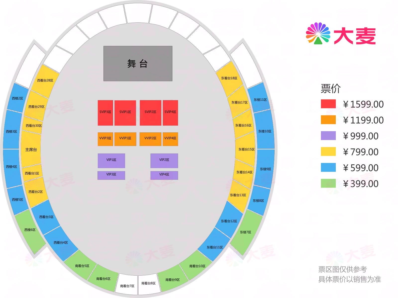 票价:399元、599元、799元、999元、1199元、1599元