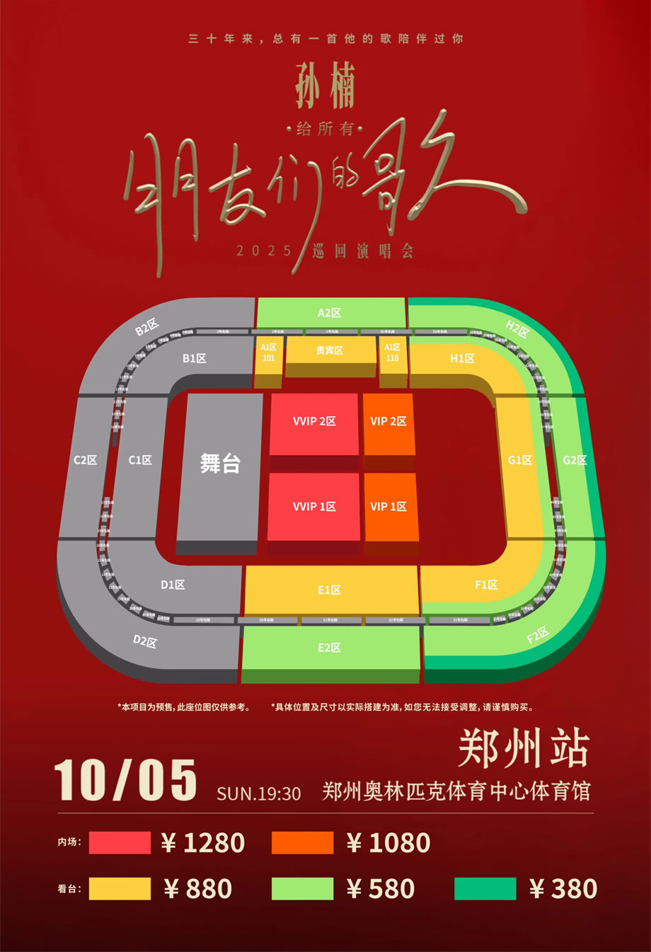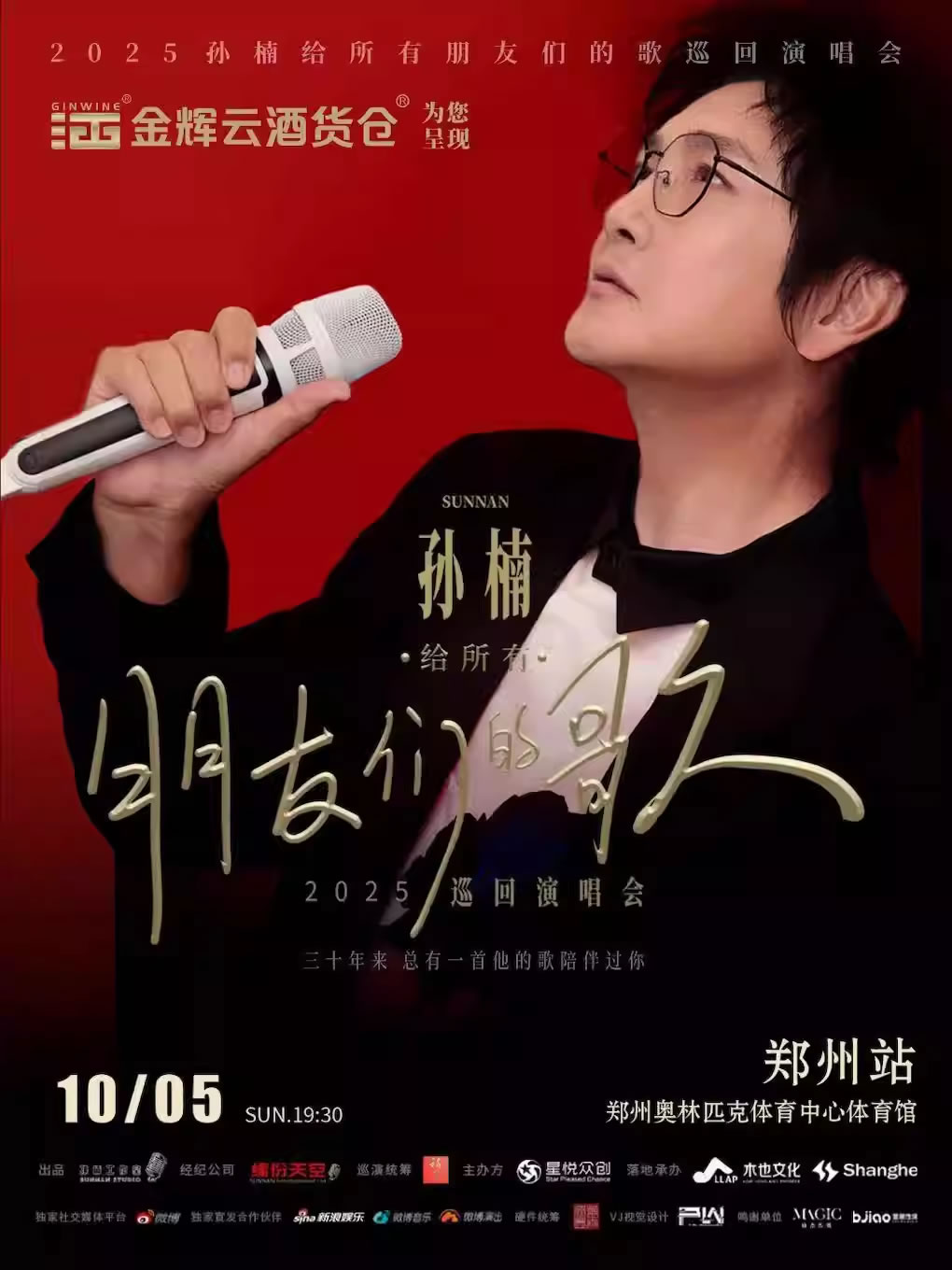 在华语乐坛,孙楠的名字犹如一颗璀璨明星,长久闪耀。如今,郑州的歌迷们迎来了一个令人振奋的消息:2025 年 10 月 5 日,孙楠将带着他的 “给所有朋友们的歌” 巡回演唱会登陆郑州市奥林匹克体育中心体育馆,为大家带来一场难忘的音乐之旅。