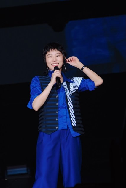 其中,“录音棚”舞台装置成为第二篇章的核心亮点。舞台被改造成创作空间,童童与乐手即兴互动,观众也被自然邀请其中,成为这段故事的共同参与者。相较于传统演唱会的单向观看关系,“状况外2.0”更强调沉浸与共创——层层递进的光影变化,结合动漫画风的布景与环绕音效,营造出完整的沉浸式氛围。随着“内”与“外”的自由切换,观众在舞台叙事中获得更具张力的体验,也为内地巡演画上圆满的收官句点。