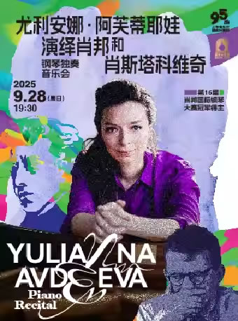 9月28日,第16届肖邦国际钢琴大赛冠军得主尤利安娜·阿芙蒂耶娃将举办独奏音乐会。精选肖斯塔科维奇《前奏曲与赋格》(Op.87)七首经典选段,并完整呈现肖邦《二十四首前奏曲》(Op.28)。