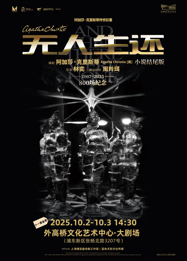 推理小说女王阿加莎·克里斯蒂是无可争议的侦探小说女王,是一位半个世纪都在用笔“杀人”的女性作家,也是一个将自己的一生都活成小说的神秘女人。小说《无人生还》是她最负盛名的一部作品,是全球最畅销的悬疑小说,也被誉为她的"最佳作品"。她亲自操刀改编舞台版结尾,将它带上了话剧舞台。本次演出将上演【小说结尾版】!
