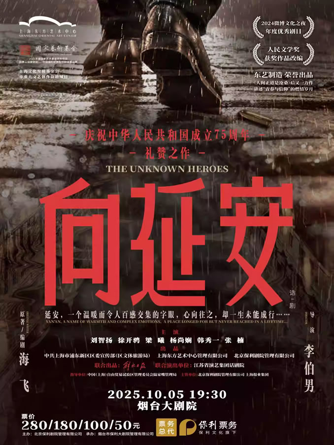 关于话剧《向延安》上海东方艺术中心出品的海派谍战题材话剧《向延安》改编自著名作家海飞的同名小说,该小说曾荣获“人民文学奖·长篇小说双年奖”。本剧由海飞亲自担任编剧,著名导演李伯男执导,该剧也是海飞作品首次被搬上舞台。话剧《向延安》延续原著小说中的主题和情节,以1937年淞沪会战打响的上海为时代背景,讲述了主人公向金喜在乱世中的艰苦卓绝和对理想信念的坚守,展现了抗日战争至新中国成立期间一代有志青年为“理想与信仰”所作出的生死抉择。该剧通过丰富的群像戏深入刻画了人性的复杂,体现小人物大信仰的风骨,以极具包裹式的参与感让观众浸入谍战现场,带领观众在戏剧矛盾中体验一场思考人性、探索信仰的精神旅程。