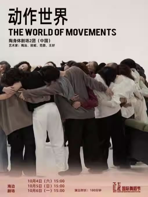 “动作世界”是陶身体剧场2团创立的首部作品,2团的舞蹈创作及表达更贴近生活,与这个时代相连,与每一个人息息相关,将身体就是剧场的理念融入到更多的人群。“动作世界”仅对在场舞者的行为逻辑与规则进行预先设定,而没有完整的“剧本”或作品成品;舞者与观者之间的分界也被有意取消,每位到场者都是共创者,每一场演出都将因每一位观众的到来,变得独一无二。
