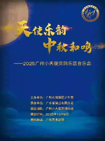 广州小天使交响乐团隶属于广州市海珠区少年宫,是一支充满活力与才华的青少年交响乐团。值此月圆佳节,乐团属下的交响乐一团、二团、交响管乐团以及管乐团近300名乐手将以“天使乐韵,中秋和鸣”为主题,为观众呈献一场精彩的中秋交响音乐会。