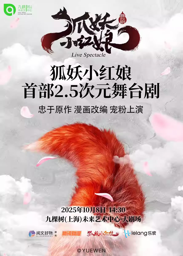 牺牲、成就、感动、爆笑、爱与和平,交织成一场场唯美的国风舞台。2024年12月《狐妖小红娘舞台剧》启动全国巡演,首演达成100%上座率佳绩,目前巡演进行中,每至一城,皆掀起狂欢。