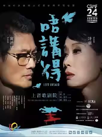 粤语黑色心理话剧《唔讲得》由中国香港实验艺术旗舰团体「进念·二十面体」制作, 改编自上海话剧艺术中心总监喻荣军荣获“曹禺剧本奖”的原创作品《不可说》,入选第二十四届中国上海国际艺术节“粤港澳大湾区文化周”核心展演单元。导演兼多媒体舞台设计为亚洲艺术科技剧场先锋胡恩威,由中国香港电影金像奖兩届影后叶童与实力派演员黄德斌领衔主演,奥斯卡提名美术指导奚仲文操刀造型设计,联合著名电影监制陈善之担任监制。汇聚亚洲表演、视觉与科技领域的顶尖创作力作。