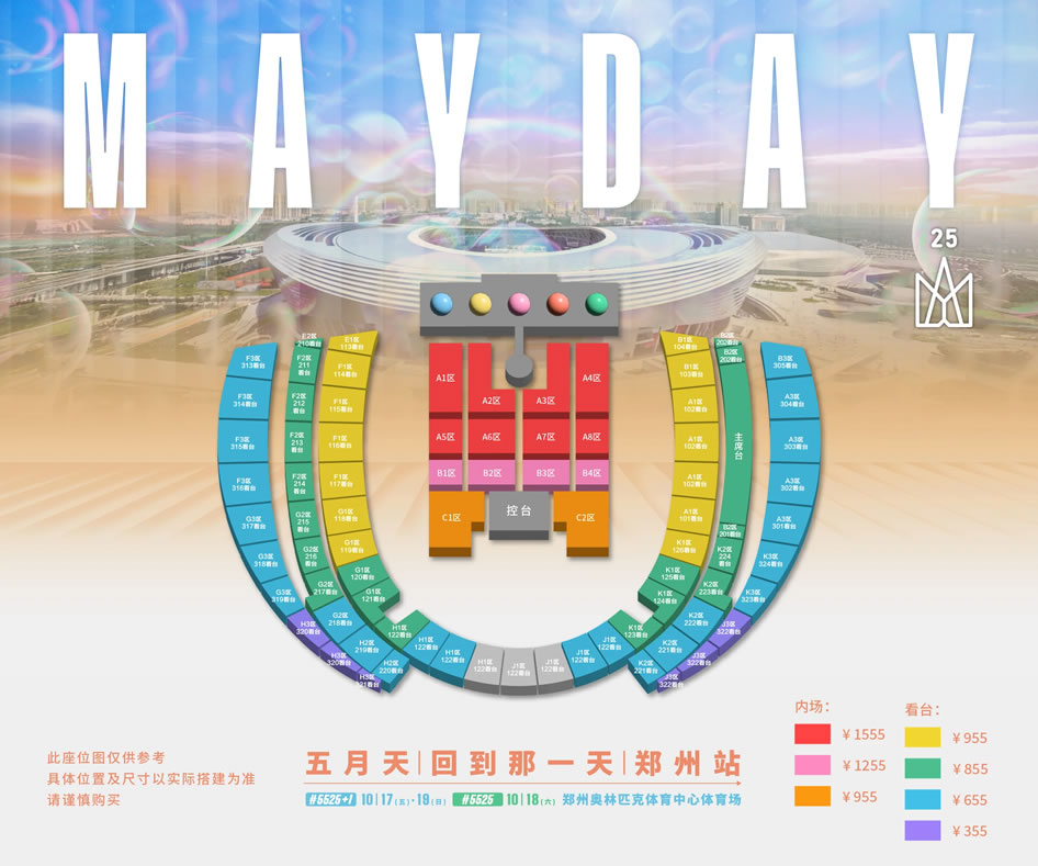 一步步细数回忆旅途,一幕幕纹上时间刻度,25年一路任性前行,与你为五。有你的每一天,都是五月天想回去的那一天。CMC Live与相信音乐共同宣布五月天于2025年9月12、13、14日,3场盛举带来「MAYDAY #5525 LIVE TOUR 五月天 [ 回到那一天 ] 25周年巡回演唱会」贵阳站・筑城环场版,于贵阳奥林匹克体育中心体育场,带来5525 / 5525+1双主题,搭乘时光机,有你有我回到那一天。球型巨幕、环场巴士、精致舞美搭配盛夏星空,共同筑起无限绝美五月天音乐时光旅程。