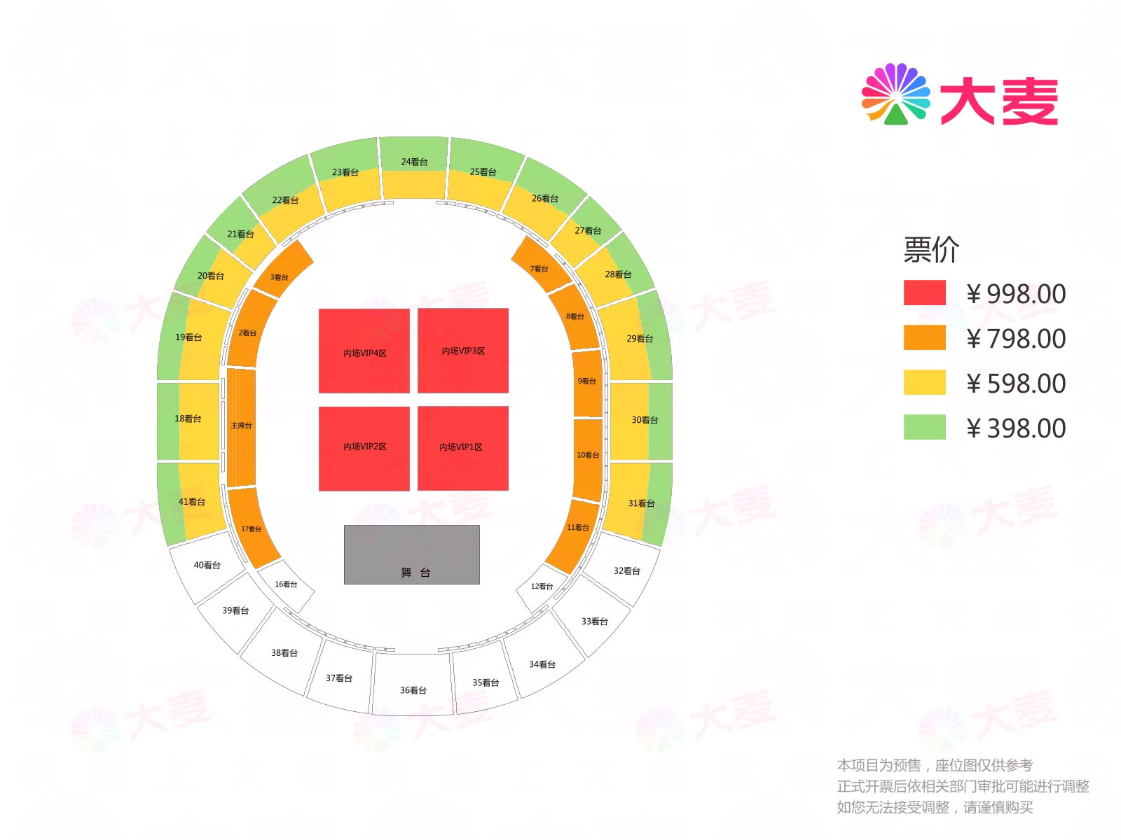 票价:398元、598元、798元、998元