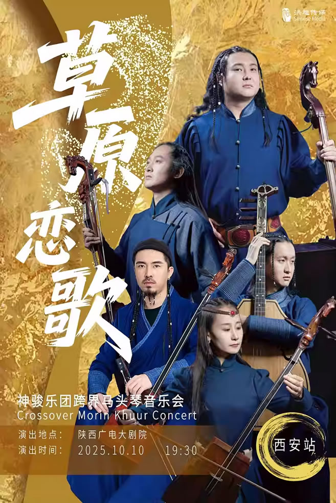 神骏乐团是一支融合世界音乐的跨界民族乐团, 长生天为他们的音乐赋予灵性,而草原上疾驰的骏马带给他们热情奔放的创作灵感。乐团创新了传统马头琴的演奏形式,创立的马头琴站立式表演形式,让音乐的表现力更加丰富多彩。神骏乐团是第一届中国民族器乐大赛的冠军乐队,是国乐大典上最具人气的民族乐队,神骏乐团多次为中外国家领导人演出,他们活跃在世界各地的舞台上,出访过十几个国家,以其成熟完美的音乐风格和极具舞台表现力的演出,获得无数赞誉。他们用满腔的传承激情谱写新时代的民族颂歌!