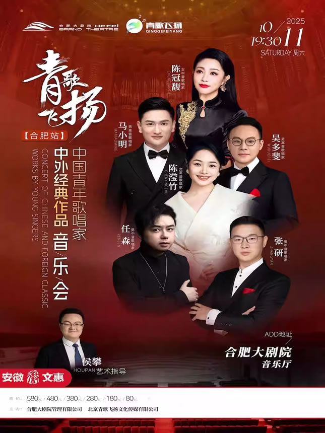 “青歌飞扬|中国青年歌唱家系列音乐会”是由青歌飞扬专业团队精心策划,众多著名歌唱家领衔呈现的国家级文化品牌。“青歌飞扬”中国青年歌唱家中外经典作品音乐会的演唱曲目来源广泛,类型丰富,风格多样,适合各种喜好的观众类型,堪称中外声乐艺术经典的饕餮盛宴。其中既有观众熟知的西方经典歌剧咏叹调、外国民歌和 艺术歌曲,也有中国不同年代、不同风格的原创歌剧精品和不同地域、不同特色的优秀民歌及艺术歌曲,更有脍炙人口的中外流行歌曲,全面展现出人类歌唱艺术至情至性、发自肺腑完美震撼,真正做到既“中西合璧”又“和而不同”,代表着近百年来中国歌唱家在世界舞台取得的最高成就