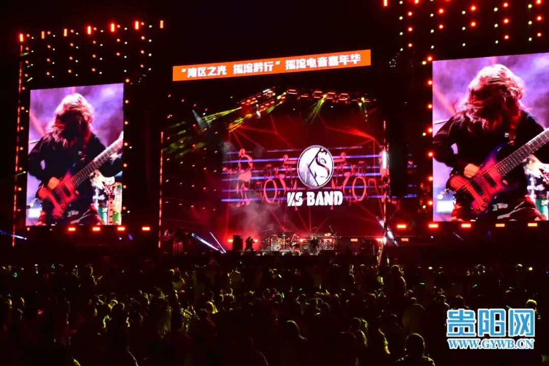 10月3日晚,为期两天的“湾区之光·摇滚黔行”摇滚电音嘉年华在多彩贵州城落幕,压轴登台的歌手崔健将现场气氛推向高潮。