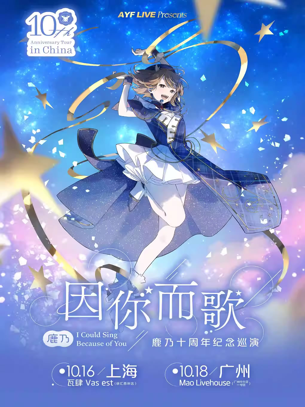 2015年,她以动画《放课后的昴星团》片头曲《Stella-rium》正式出道,开启了从网络走向更广阔的音乐旅程,她用温柔而坚定的歌声,陪伴了无数听众的青春时光。而2025年,鹿乃以「因你而歌」为主题开启十周年纪念演唱会,这是一次回顾与感恩,也是一次面向未来的约定——因为有你,歌声才有意义。
