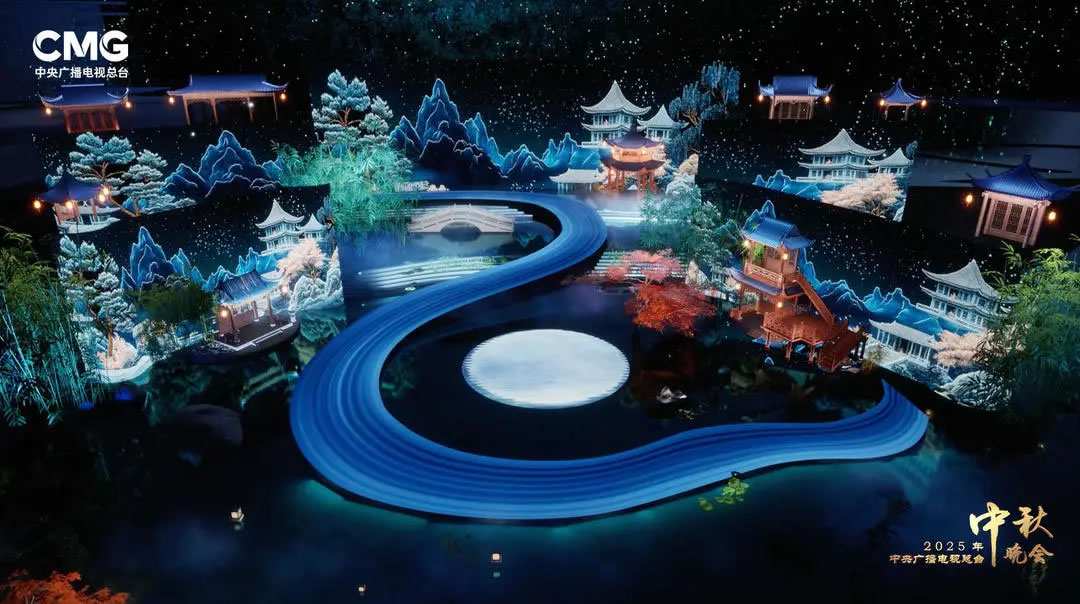 在场景呈现上,晚会早已跳出封闭演播厅,2025 年央视秋晚将舞台融入德阳山水,未动一土一木实现自然与表演的共生, “实景 + 文化地标” 的模式已成为行业共识。2025 年央视秋晚用 8K 镜头复刻青绿山水纹路,让青铜纹样在湖面流转,技术应用的迭代更让文化表达如虎添翼。