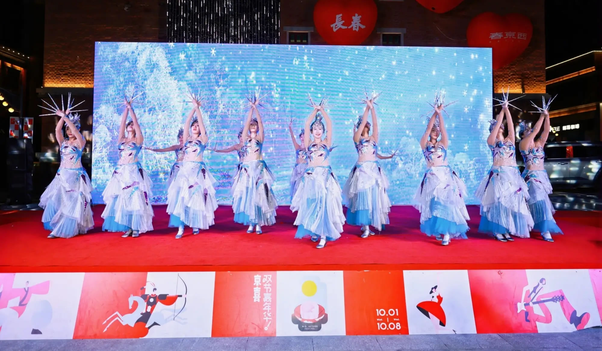 现场不仅有舞蹈盛宴,晚会的歌曲串烧更戳中“情感点”。《春风十万里》的清新明快唱出春日生机,《我们在长春相遇》的温柔旋律则满是家乡告白,歌声裹着暖意飘向夜空。当全体演员再次登场,歌舞交织间,一幅“国泰民安、万家灯火”的盛世画卷徐徐展开——台上星光璀璨,演员们用尽全力传递温情;台下闪光灯与月光交辉,观众举着手机记录瞬间,掌声、欢呼声不时与歌声相融,将思乡情、家国梦紧紧裹在一起。
