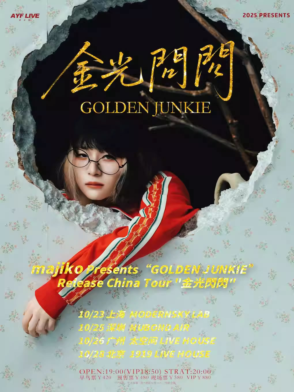 在2024年巡演结束后,majiko 相继发表了全新单曲「テディ」和「Q」。而本次巡演,则是为即将在2025年10月上线的新单曲「GOLDEN JUNKIE」展开的发行巡演。更重要的是,这场名为“金光闪闪”的巡演,也是majiko出道10周年的纪念盛典。让我们一起见证majiko十年沉淀的璀璨力量,共同开启迈向未来的新篇章与闪耀序曲!