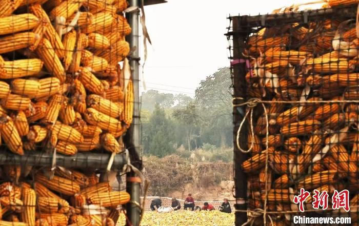 资料图:寒露时节,山西省运城市新绛县龙兴镇店头村,一家种植专业合作社的成员们将玉米剥皮、储藏、晾晒。高新生 摄