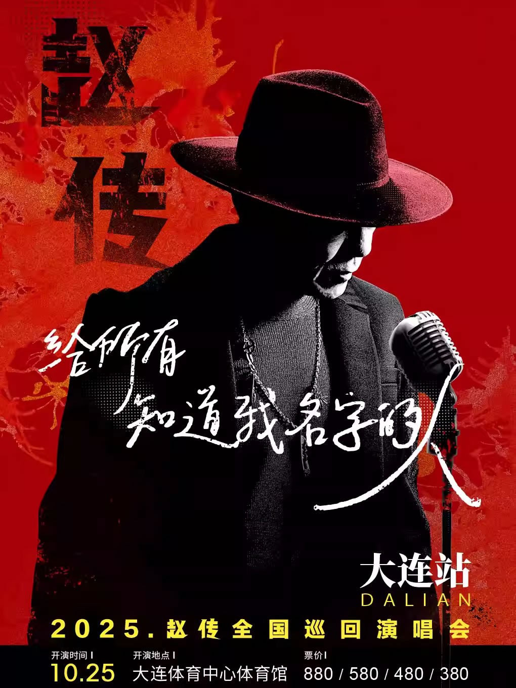 出道三十多年,赵传依旧保持对音乐的热爱,在红尘中唱尽人间冷暖、鼓励歌迷们温柔面对生活。2025年赵传《给所有知道我名字的人》巡回演唱会全新出发,歌单升级,全新编曲,他将用独特的音乐风格和精湛的唱功,为歌迷带来一场场震撼心灵的视听盛宴,更多惊喜,拭目以待!