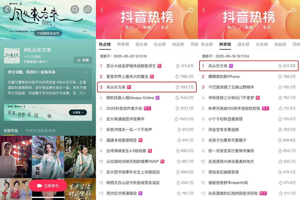 正如 “风” 的流动不止,抖音正以自身生态为纽带,让东方美学既有文化传播的温度,又有品牌成长的力度,最终助力中国文化与中国品牌,在全球舞台上收获更持久的影响力。未来,「风从东方来」还将前往更多城市,结合不同品牌特色打造落地事件。我们有理由相信,这股从东方吹来的风,将继续带着文化的温度与商业的活力,在全球舞台上书写更多 “东方美学对话世界” 的故事,让东方之美,真正吹向更远的地方。