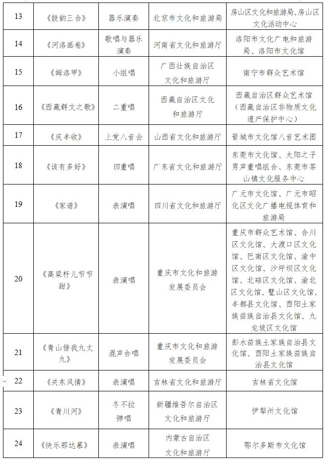 从作品形式来看,27部终评作品题材广泛、形式多样,既包含器乐类,也涵盖声乐类,具体涉及器乐合奏、表演唱、独唱、阿卡贝拉、重唱、弹唱、混声合唱等多种音乐表演形式。这些作品不仅带有浓郁地域特色,更生动体现了群众文艺工作者扎根生活的创作理念,真挚传递出人民群众对美好生活的热切向往。