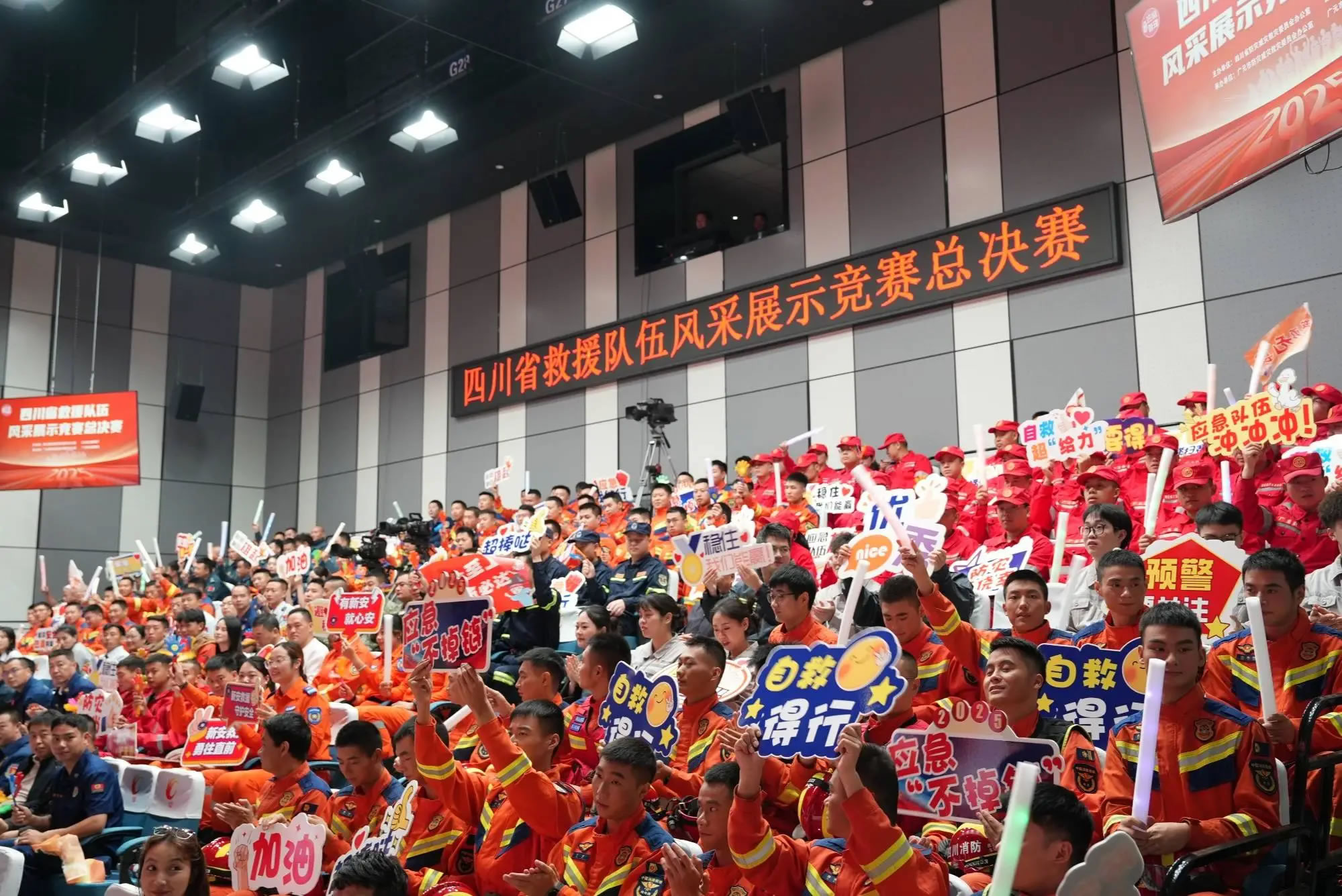 比赛现场,作为四川省消防救援总队与眉山市应急管理局联合推荐的“种子队伍”,眉山市消防救援支队带来展演《破风逆行》,以“9·5泸定地震”真实救援经历为蓝本,通过情景再现的方式,生动还原了消防员在抢险救援、疏散群众、紧急处置等场景中的行动轨迹;泸州市综合应急救援支队带来展演《泸焰淬烽》,队员们身着救援服击鼓而舞,鼓点时而如火灾警报急促,时而如救援冲锋号激昂;四川能投发展股份有限公司的《分秒战场》聚焦能源应急场景,尽显行业救援的硬核实力……在这场持续3小时的竞赛里,各支救援队伍将自身风采诠释得鲜活、深刻。