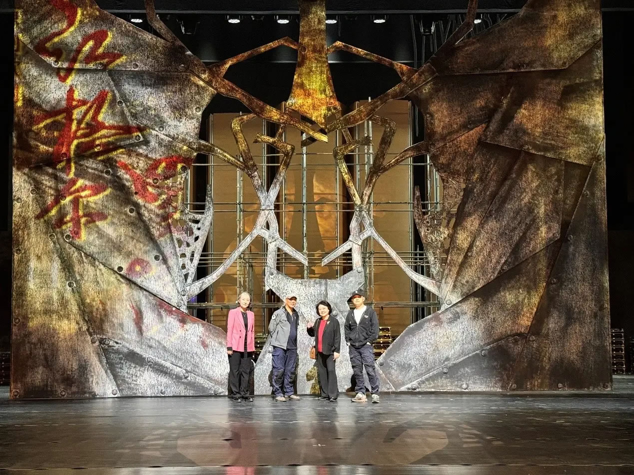 总导演陈蔚,视觉总监、舞美设计刘科栋,执行导演包玉荣,舞台技术总监黄志高合影留念
