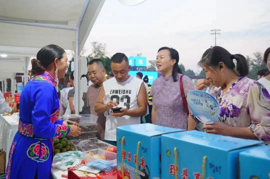 在非遗展示区,遂宁的观音绣、泥彩塑与理县的藏羌挑花刺绣、羌笛等交相辉映,游客们不仅可以近距离观赏精湛技艺,还能亲手体验扎染、泥塑等互动项目,在一针一线、一捏一塑中,感受非遗背后深厚的文化魅力与民族智慧。当《吉祥理县》歌声响起,川剧变脸与藏族歌舞同台,《藏羌锅庄》的旋律让演员与观众手拉手起舞,现场化作欢乐的海洋。