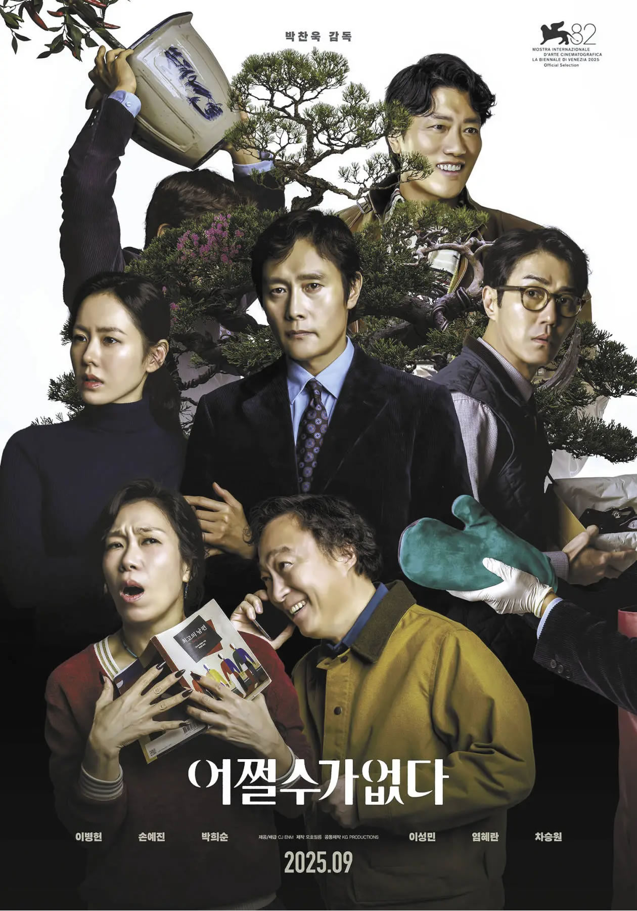 《无可奈何》由李炳宪、孙艺珍、朴熹洵、李成民、廉惠兰等人主演,改编自美国作家唐纳德·维斯雷克的小说《斧头》,讲述被公司解雇的中年上班族柳万洙(李炳宪饰)为重返职场,不惜逐一“除掉”潜在竞争者的故事。朴赞郁以其特有的黑色幽默,将一个普通父亲的绝望求生刻画成当代社会的荒诞寓言。该片于今年8月亮相威尼斯电影节,并于9月24日在韩国正式上映。
