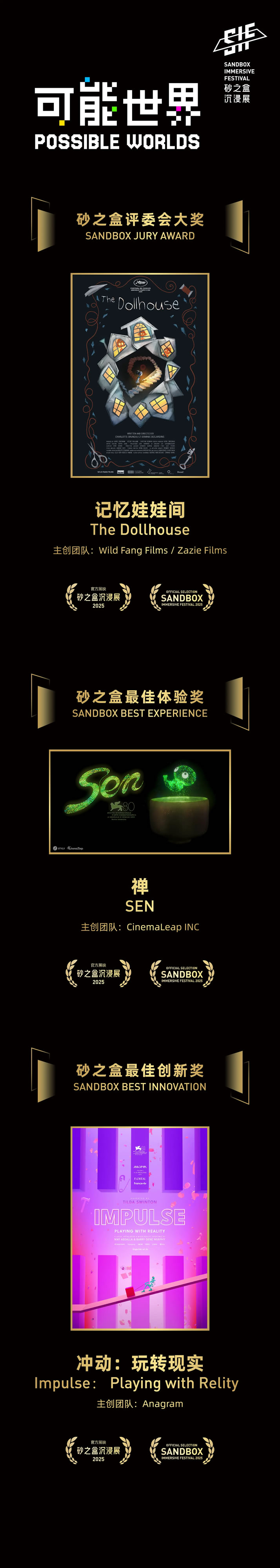 在今天的「砂之盒颁奖礼」环节,2025砂之盒沉浸展的竞赛单元评选结果最终揭晓!