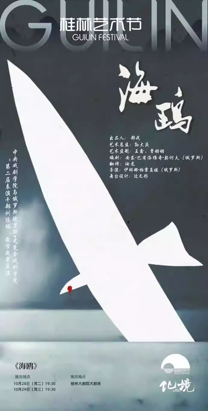 《海鸥》是中央戏剧学院与俄罗斯鲍里斯.史楚金戏剧学院第二届“表演干部训练班”教学成果剧目。俄罗斯导演伊琳娜.帕霍莫娃执导。俄国剧作家契诃夫在1895年创作的四幕喜剧。