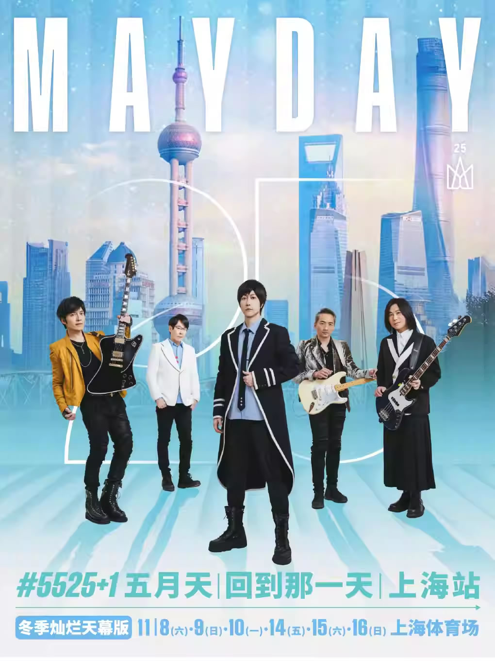 搭乘音乐时光机,任意门开启五月天的多重宇宙,从第1天到第9125天,你想回到有五月天的哪一天?细数25年,9张专辑,3部演唱会电影,2部纪录电影,13个主题巡回演唱会,都是五月天因音乐而生,为LIVE而活的印记。25年来一路用LIVE贯彻快乐,累积超过600场大型演唱会。五月天 [ 回到那一天 ] 25周年巡回演唱会从台中站开演,5525时光机一路飞行高雄、香港、北京、深圳、太原、武汉、成都、上海、桃园、新加坡、澳洲 Sydney、美国 Las Vegas、天津、杭州、台北、贵阳等回忆之城,超过91场次笑泪感动交织时间线。2025年北京鸟巢连开13场空前新高,9度叩关43场缔造鸟巢新纪录,是每一位乐迷的支持与陪伴,携手五月天成为华语乐坛纪录保持王者乐团!五月天演唱会传奇诗篇,因为有你双向奔赴而不凡,而珍贵。