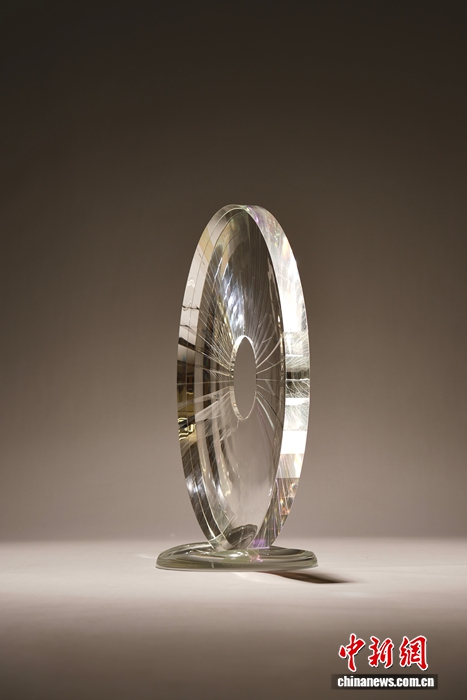 又比如作品:《天目》将圆形水晶凿刻出放射状线条、形成“瞳孔”效果的作品,则标志着一次更为激进的转向。它从具象走向了极致的简洁与凝练,直指观念的核心。“瞳孔”的意象,巧妙地构建了一个“看与被看,是一体两面”的哲学现场。