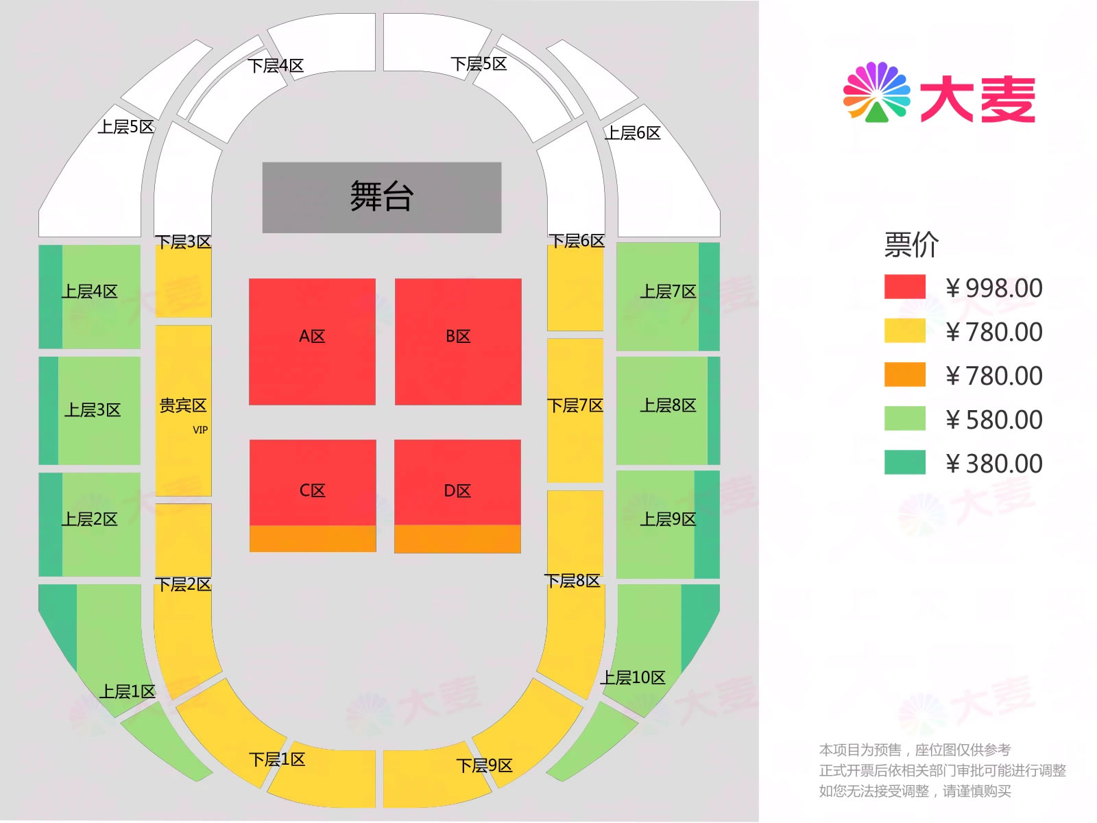 票价:380元、580元、780元、998元