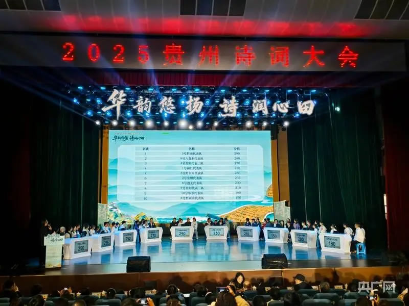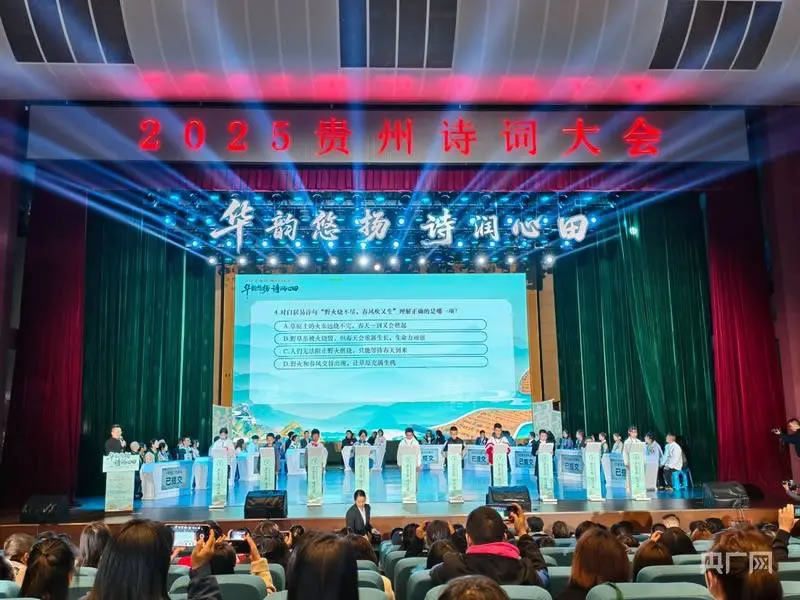 央广网贵阳10月25日消息(记者杨贇 实习记者林敏)10月25日,“华韵悠扬·诗润心田”2025贵州诗词大会省级决赛在贵阳幼儿师范高等专科学校音乐厅举行。来自贵州省9个市州的10支代表队齐聚一堂,通过必答、抢答、风险题三个环节展开诗词竞技。
