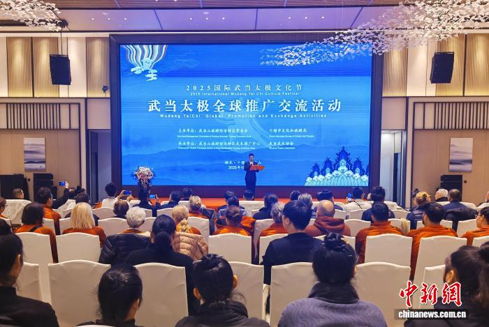 中新网湖北武当山10月26日电 (汪伟 周琼 周谭俊男)武当太极全球推广交流活动25日在湖北武当山举行,来自海内外的武术名家、传承人代表、武当武术海内外推广中心代表、全球武当武术推广中心负责人等参加活动,共话武当太极全球推广,共绘国际文化交流新蓝图。