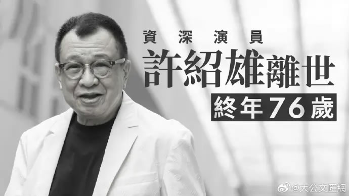 港媒称,27日惊传许绍雄病危入院,家人及不少圈中好友更被急召到医院见面,包括好友黎芷珊、苗侨伟夫妇及香港电视广播有限公司(TVB)监制等。28日上午约11时,许绍雄家人通过黎芷珊向媒体公布许绍雄因癌症引发器官多重机能衰竭在凌晨安详离世的消息。同日,TVB官方微博发文悼念:“青山远行,艺影长存。”惠英红、甄子丹、舒淇等多名艺人也纷纷发文悼念许绍雄。