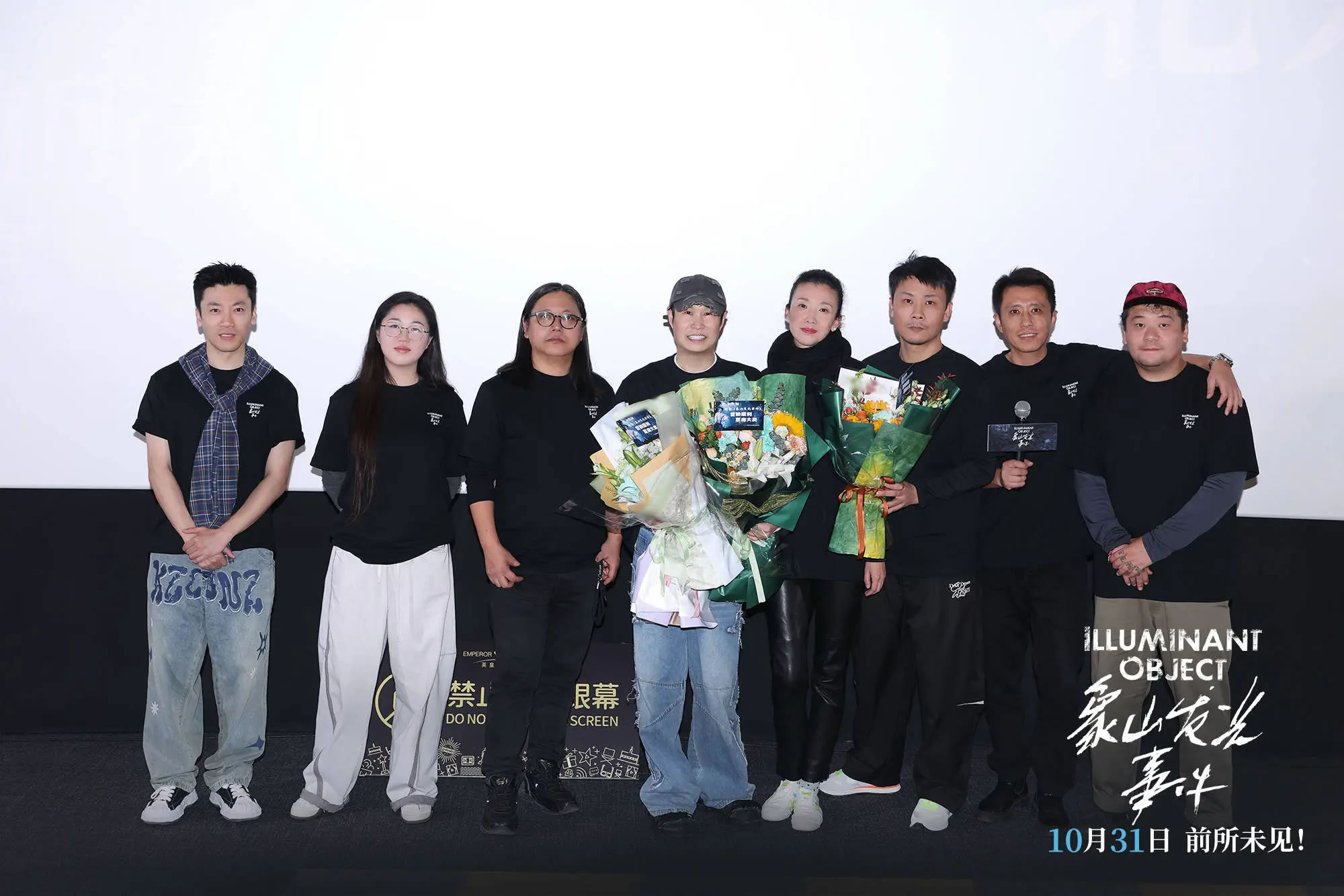 惊悚悬疑电影《象山发光事件》近日在京举办首映礼,导演编剧赵域、监制常雷、领衔主演小沈阳、主演王唯、主演张登平、友情出演倪景阳、出品方代表王国臻、摄影指导陈晨出席首映礼活动,并与到场观众交流分享。同时也有不少业内嘉宾来到现场支持,资深电影人沈克敏,资深经纪人徐子玥,爱奇艺制片人覃楠岚提前观影,沉浸式感受这部采用独特伪纪录片手法拍摄的惊悚电影。影片将于10月31日万圣节上映,此次首映也提前给观众带来了超前的氛围体验。目前影院已开启预售。