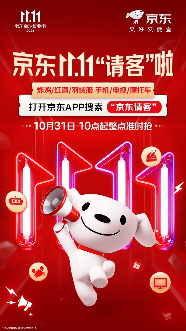 京东11.11“请客”活动即将开启,好吃、好玩、好用的通通都请,等你来做客!即刻上京东APP搜索“京东请客”,提前预约心仪好礼和福利,10月31日10点整点开抢,惊喜不容错过。