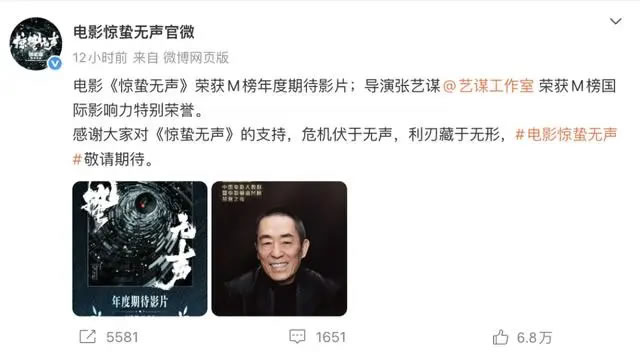 30日晚,@电影惊蛰无声官微 发文:“感谢大家对《惊蛰无声》的支持,危机伏于无声,利刃藏于无形,敬请期待。”