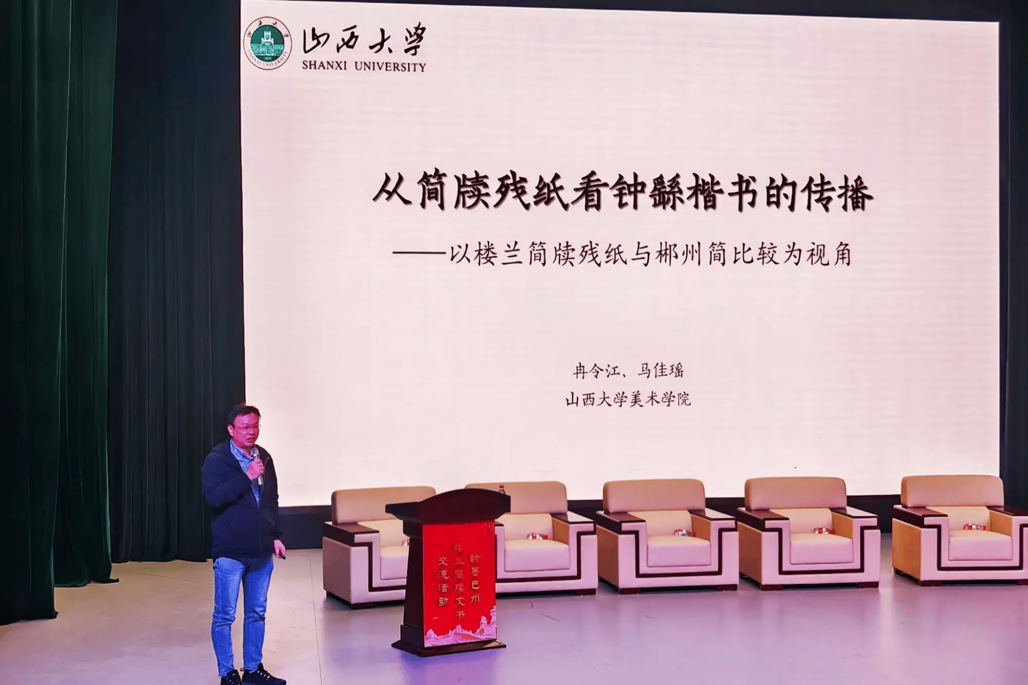 活动中,在场专家围绕楼兰简牍与汉晋书法展开深度交流。湖南大学岳麓书院原副院长、中国简帛书法艺术研究中心主任陈松长教授,以《楼兰残纸与郴州晋简楷书散论》为题解析书法关联;中国书协理事、郑州大学书法学院副院长李逸峰教授,通过《从楼兰简纸看早期行书的“形”与“势”》探讨书体演变;江苏师范大学文学院周珩帮教授聚焦《楼兰出土〈张济逞文书〉的增订与书学讨论》,分享最新研究发现;山西省书协副主席、山西大学美术学院冉令江副教授,则从《从简牍残纸看钟繇楷书的传播》切入,梳理书法传播脉络。每位专家发言后,本次活动总策划、书法史学者、四川文理学院中华传统文化学院副教授朱中原均进行专业评述和交流解析。