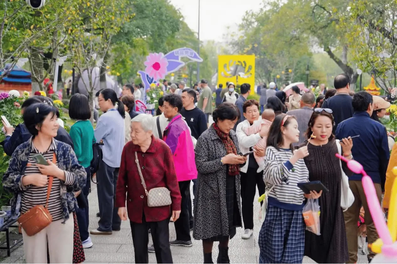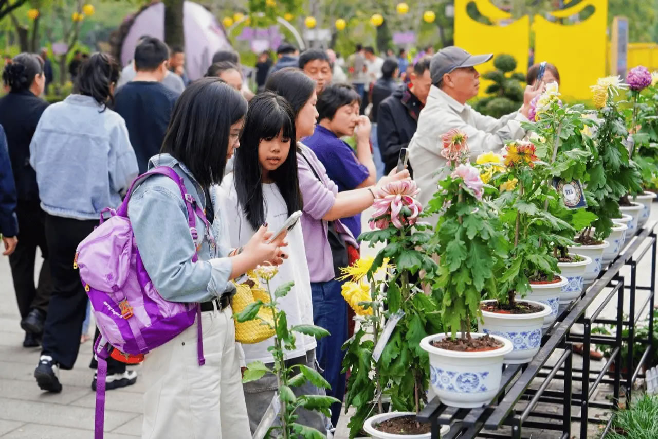 值得一提的是,AI互动、主题市集、香水文创等新业态也让今年的“老”菊展焕然一“新”。借助科技赋能与文化创新,它已经成功地从一个单一的视觉盛宴,升级为一个集视觉美学、互动体验和消费场景于一体的综合性文旅平台。