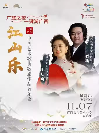 2025年11月7日,王庆爽和孙砾将再次来到广西文化艺术中心,将为观众带来一场兼具艺术性与情感温度的演出《江山乐——中国艺术歌曲歌剧作品音乐会》。