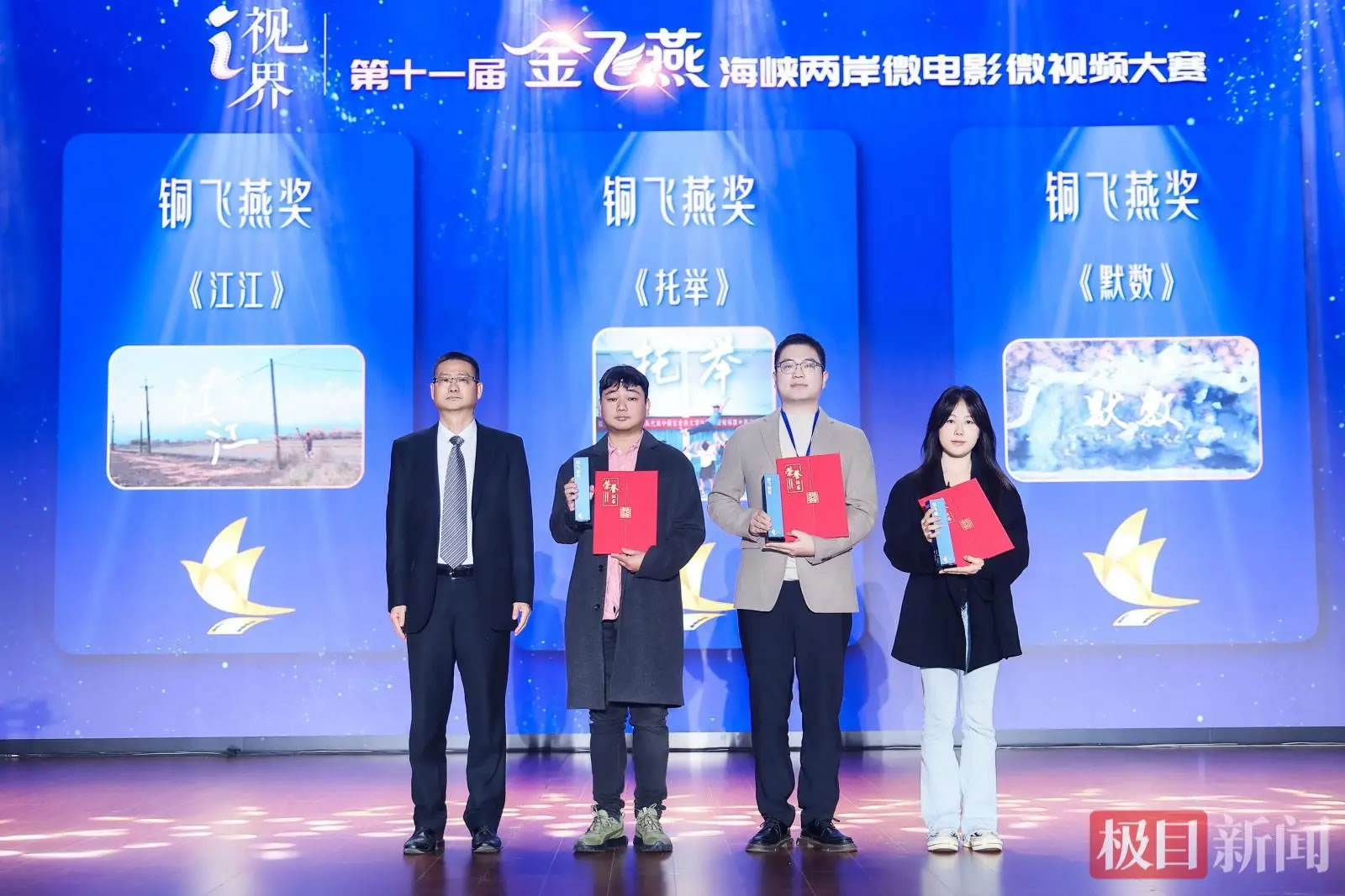 经评审,《在细雨中呼喊》获本届大赛最高奖“金飞燕奖”,《台北一夜》《山河同渡》获“银飞燕奖”,《默数》《托举》《江江》获“铜飞燕奖”。现场还颁发了最佳摄影奖、最佳编剧奖、最佳音效奖、最佳短视频奖等7个单项奖;特设“超有料文化奖”“超来电共鸣奖”“超会玩技术奖”等奖项,致敬青年创意的多元绽放。