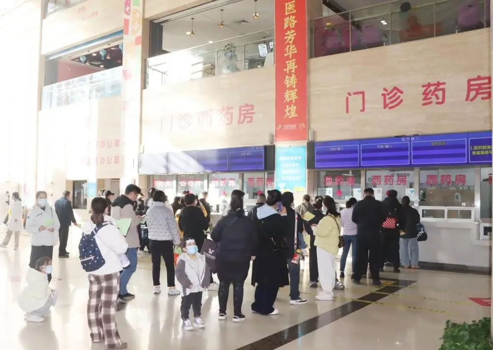 患儿家长在西安市儿童医院门诊药房排队取药。新华社发