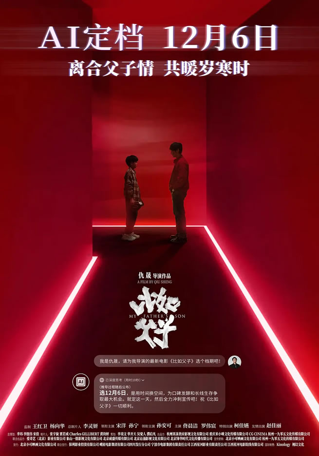 《比如父子》是由杭州果冻效应影视文化有限公司等七家公司联合出品,仇晟编剧并执导,宋洋、孙宁、孙安可领衔主演,佟晨洁、罗伟宸、柯佳嬿、赵佳丽出演的中法合拍剧情科幻电影。该片于2025年12月6日上映。
