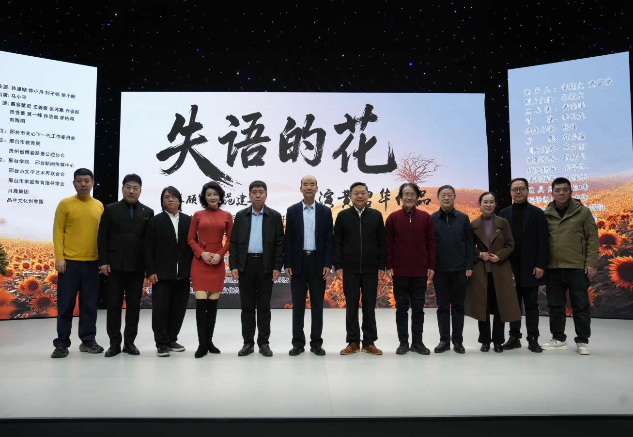 故事围绕少女周晓洋的死亡案件展开,表面证据指向校园霸凌而自杀,但其母赵曼婷坚信女儿是他杀。调查过程中,人物关系被层层揭开,林悦和陈昊的母子关系,韩雯雯对周晓洋的霸凌和公司内部隐藏的利益纠葛,最终,谁是凶手,每个人都似乎有动机,真相在迷雾中若隐若现,深入讨论讨论校园霸凌、原生家庭问题、职场人性等复杂的社会议题。该剧由著名导演黄昭华执导,著名军旅歌唱家、国家一级演员孙潼顺、主演电影荣获华表奖提名的实力派演员钟小丹领衔主演,中国曲艺家协会原副主席马小平友情出演,徐小晰、刘子铭、慕容慧君等演员联合主演,一大批新生代演员王姜壹、张芮嘉、兴姿彤、田世豪、黄一峰、孙浩然、刘雨桐等亲情加盟。开机仪式现场高朋满座,思想汇聚。邢台市十四届人大常委会原主任、党组书记、邢台市关心下一代工作委员会主任、本剧艺术顾问范建巡,中国曲艺家协会原副主席、山西省曲艺家协会主席马小平,中共邢台市委宣传部副部长李素霞,邢台市教育局副局长、市教育局关心下一代工作委员会主任史战坡,邢台市文学艺术界联合会副主席高玉昆,邢台学院教师教育学院党委书记梁立君,著名军旅歌唱家、一级演员孙潼顺,著名演员钟小丹等以及邢台市家庭教育指导学会会长杜艳峰等领导、专家、艺术家及联合出品方、资助企业代表齐聚一堂,共同见证这一具有重要社会意义的文化项目扬帆起航。仪式在庄重的氛围中开始,活动现场首先播放了来自国内的著名演员孙洪涛、兰岚、阿依古丽等知名人士对本剧开机的祝福音频,彰显了该项目所引发的广泛社会关注与期待。随后,多位领导与嘉宾发表了热情洋溢的讲话。邢台市关心下一代工作委员会主任范建巡在讲话中指出,家庭是社会的细胞,青少年是国家的未来。《失语的花》紧扣时代脉搏,直面家庭教育中的痛点与难点,对于引导全社会树立正确的家庭教育观、促进青少年健康成长具有积极的推动作用。作为艺术顾问,他期待这部剧能成为一部有温度、有深度、有力度的精品力作。