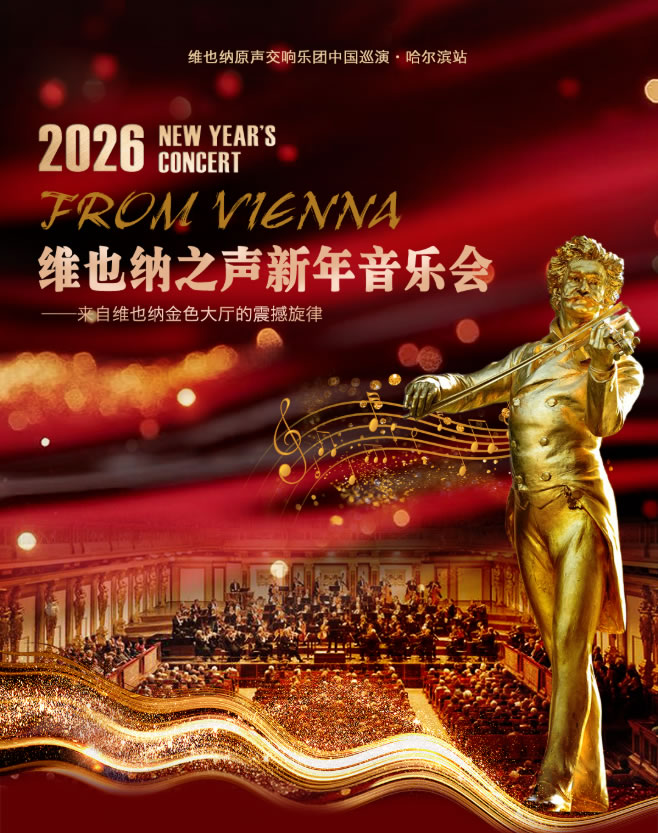 2026年维也纳原声交响乐团哈尔滨新年音乐会已经开启预售通道,抢先购票,预订下备受瞩目的”维也纳之声“现场,聆听经典时刻!