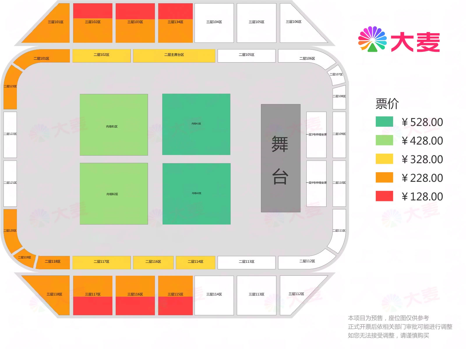 票价:128元、228元、328元、428元、528元
